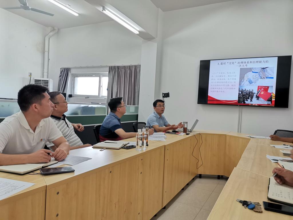 全体党员在鲜红的党旗下重温入党誓词,用铮铮誓言抒发对党的忠诚之情,表达党员的初心和使命。随后,全体党员观看了中组部和中央广播电视总台联合录制的专题节目《榜样四》,聚焦“不忘初心、牢记使命”主题,学习优秀共产党员坚定信仰、担当作为、服务群众、无私奉献的精神风貌。党支部书记辛立章同志还给全体党员讲授了“在抗击疫情中守初心担使命”的主题党课,共同学习贯彻习近平总书记关于做好常态化疫情防控工作的重要讲话和重要指示批示精神,宣传战“疫”精神。