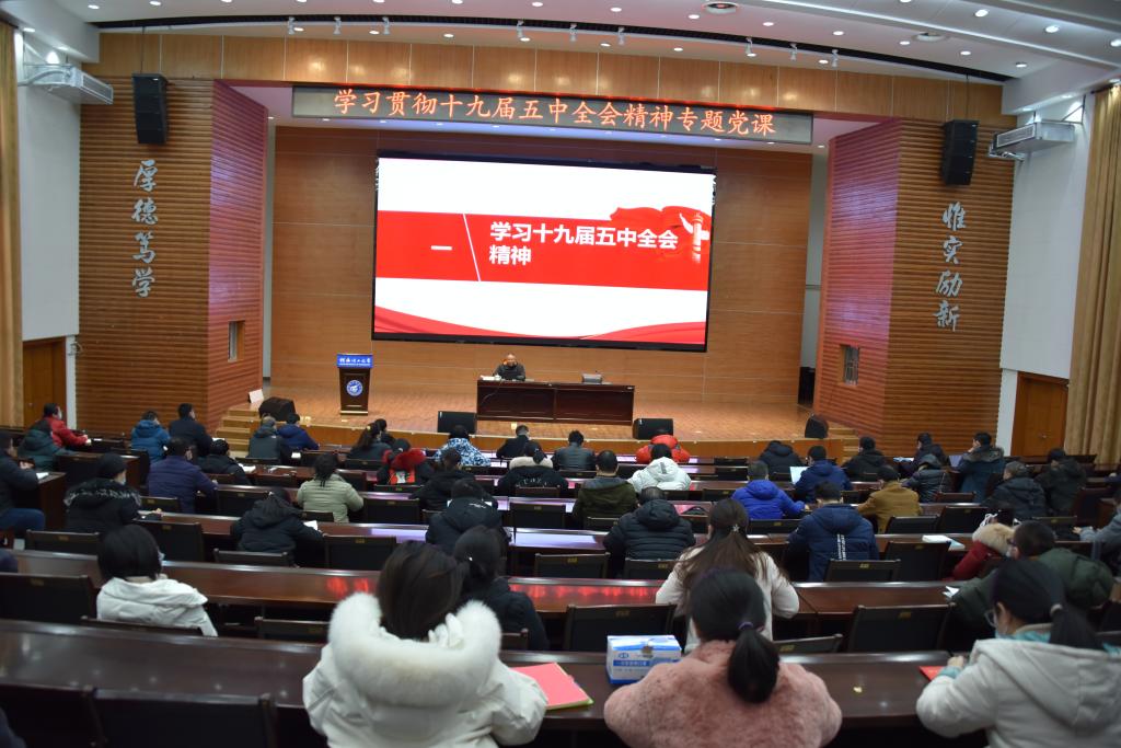 为深入学习贯彻党的十九届五中全会精神,2020年12月31日下午,在屏风校区图书馆报告厅,学校党委常委、副校长王敦球同志以“学习贯彻十党的九届五中全会精神”为题,为人事处、环境科学与工程学院和土木与建筑工程学院师生代表讲授了一堂内容丰富、生动精彩的党课。