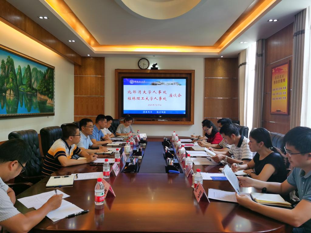 7月19日下午,北部湾大学人事处处长陆安山等一行6人来我校进行工作交流。校长助理、人事处处长辛立章和人事处领导班子及相关科室负责人与来访客人在屏风校区第二会议室进行了座谈。