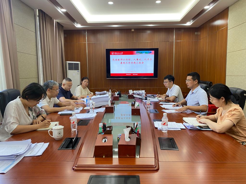 8月5日,学校党委常委、副校长黎贞崇到教工部(人事处、人才办)专题调研指导人事人才工作,教工部(人事处、人才办)领导班子成员和各科室负责人参加会议。