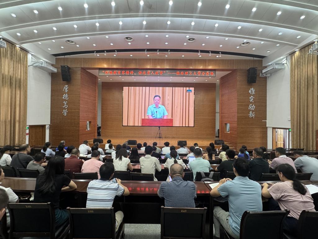 为庆祝第40个教师节,加大优秀教师宣传力度,9月6日上午,自治区教育厅在南宁举办“弘扬教育家精神,讲述育人故事”活动,我校在屏风校区图书馆报告厅设立分会场,曾繁荣出席会议,教工部(人事处、人才办)负责人、各单位(部门)教师代表参加视频会议。