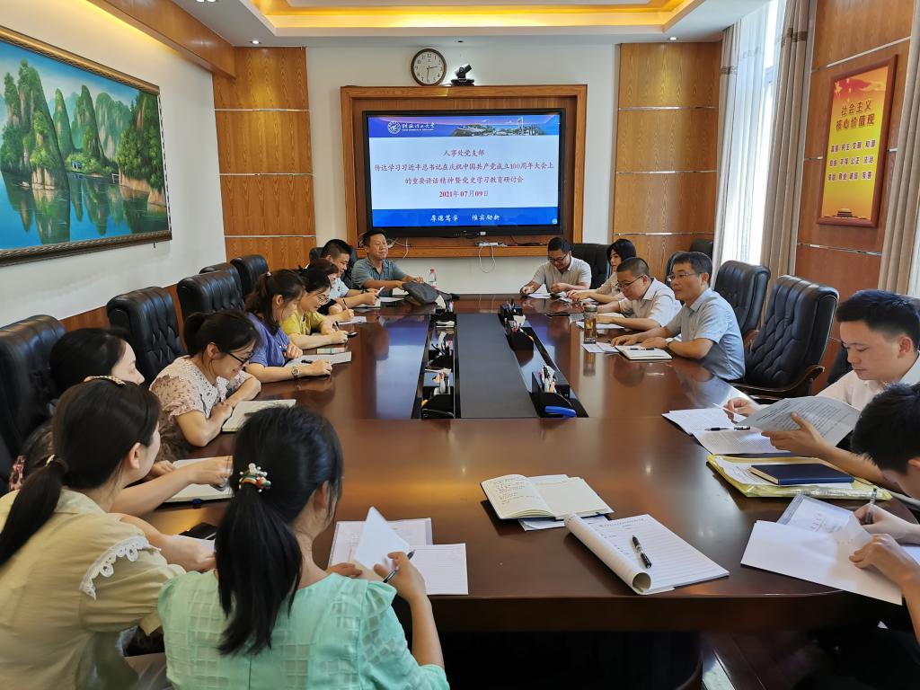 7月9日,人事处召开会议,传达学习习近平总书记在庆祝中国共产党成立100周年大会上的重要讲话精神暨召开党史学习教育专题研讨会。会议由党支部书记、校长助理、人事处处长辛立章主持,人事处全体党员、干部参加会议。